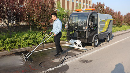 配备手持式高压喷枪,旋转喷头,用于冲洗小广告、垃圾桶、地面垃圾。